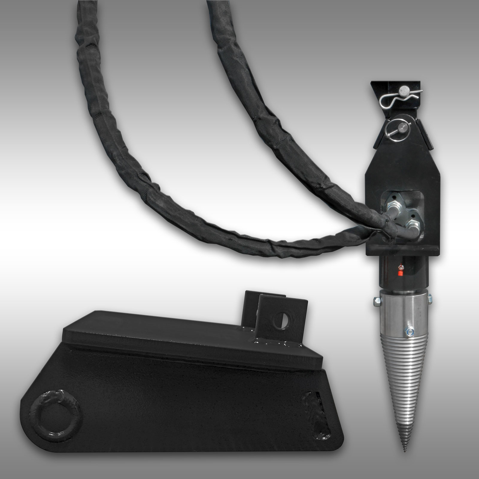 La partidora de cono JSK-350 con cono de partido de 350 mm que incluye soporte MS-03 para acoplarlo a su miniexcavadora. Garantiza una forma segura y eficiente de partir troncos y raíces de árboles.